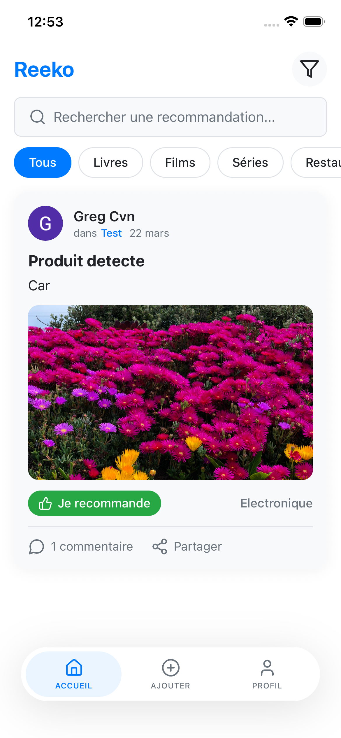 Recommandez un restaurant, un film, un livre... avec une photo et votre avis.